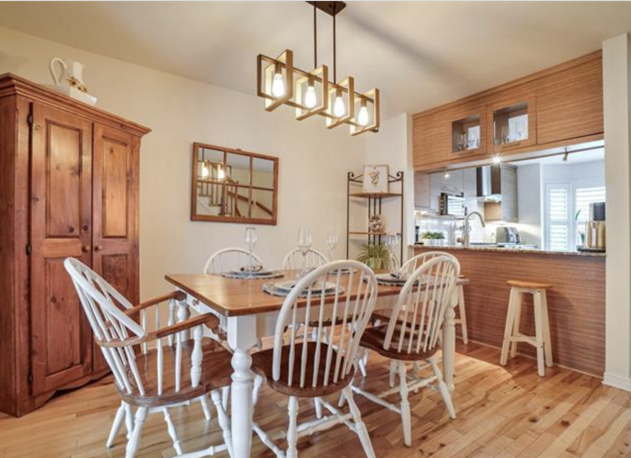 (Français) Maison de ville impeccablement entretenue, clé en main, dans le secteur recherché de la Gare de Mont St-Hilaire, avec vue sur la montagne. Elle offre 4 chambres, 2 salles de bain dont celle de l'étage avec plancher chauffant, un salon avec foyer au gaz et une salle à manger à aire ouverte. À l'extérieur, une cour intime, paysagée, clôturée avec piscine. Emplacement idéal à deux pas du train (45 min vers Montréal), proche des écoles, garderies, parcs, rivière et commodités. Un cadre de vie exceptionnel, parfait pour la famille!